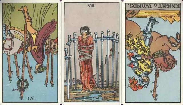 牌:权杖六- 宝剑八+ 权杖骑士-
